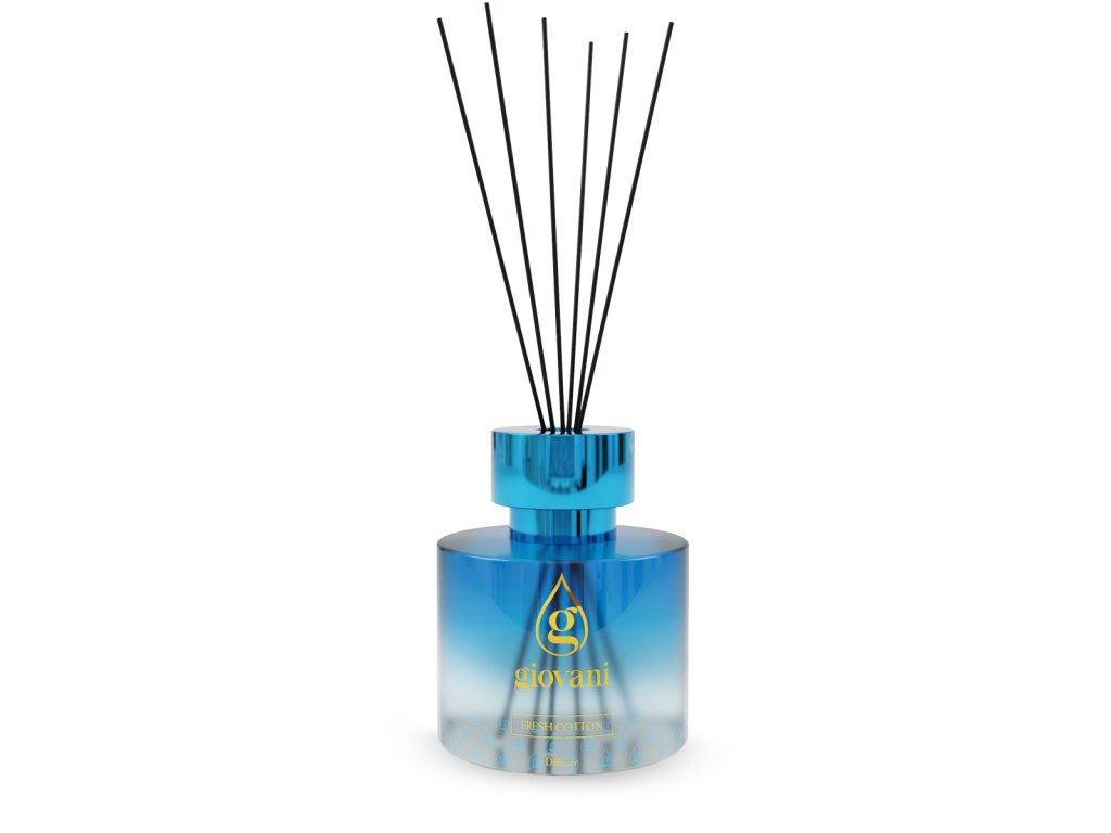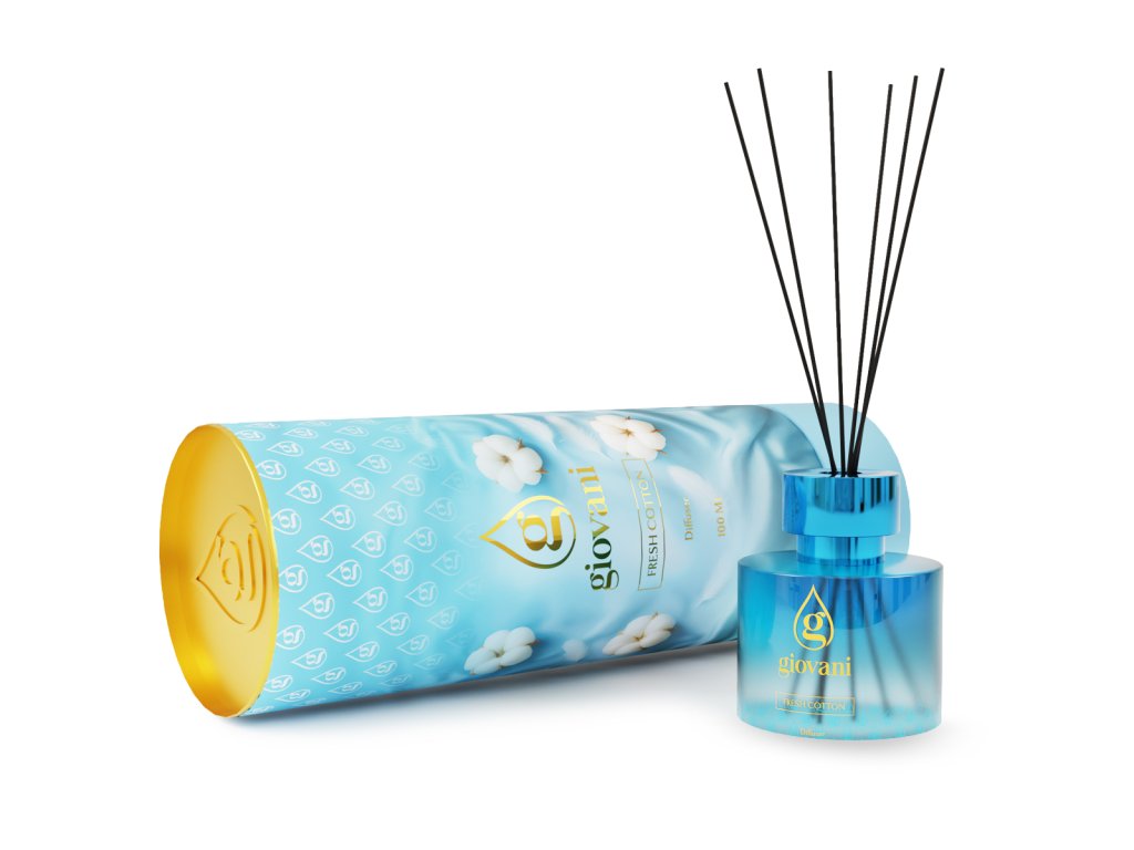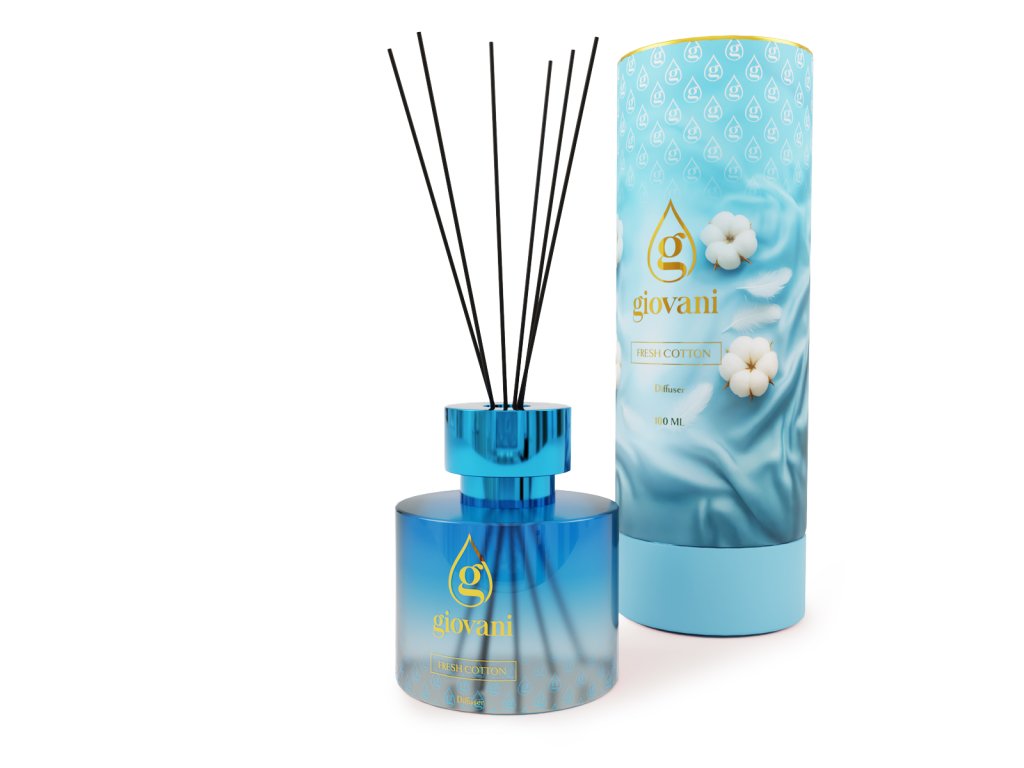 Uniseks dišava čistosti, mehkobe in brezčasne elegance. Dišeči difuzor s palčkami Giovani® FRESH COTTON združuje cvetlični uvod vrtnice, šmarnice in jasmina z nežnimi, pudrastimi toni vijolice. V srcu se razvije sladek pridih marcipana in tonke, ki dišavi dodata prijetno globino.