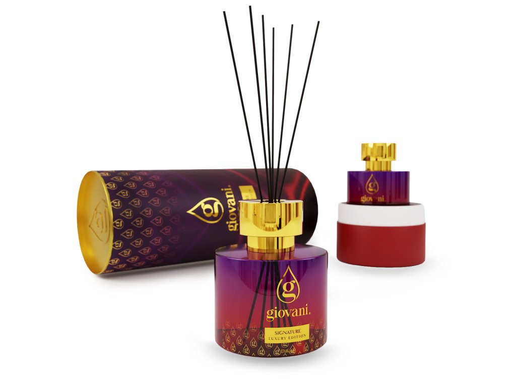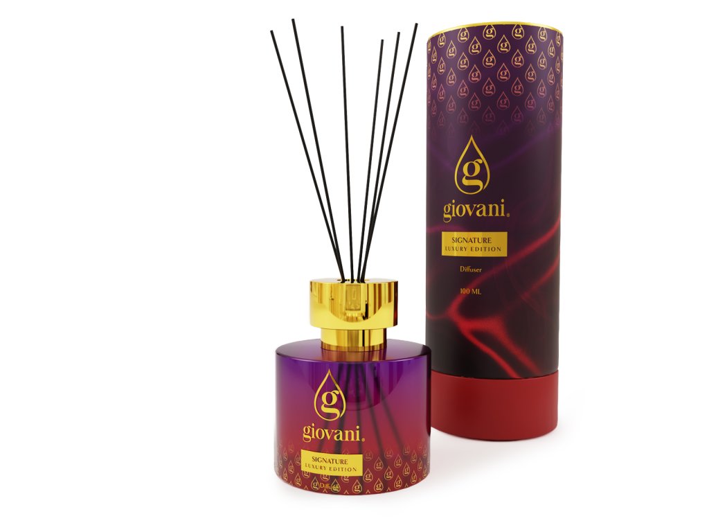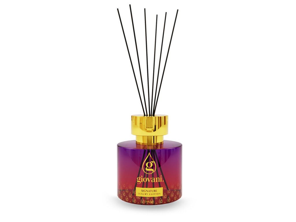 Značilna dišava z dušo luksuza in skrivnostne privlačnosti. Dišeči difuzor s palčkami Giovani® SIGNATURE se odpre s svežimi notami mandarine in bergamotke, ki jih dopolnjuje eksotični ylang-ylang. V srcu se prepletata jasmin in sladki karamel. Osnova iz ambre, mahu in cedre ustvari izrazit, eleganten in dolgotrajen zaključek.