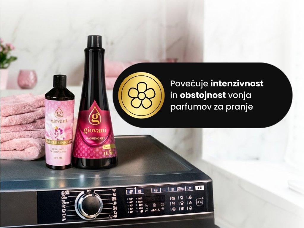 Pranje ne rabi biti več zgolj nujno opravilo. S pralnim gelom Giovani® SWEET postane pranje osvežujoča izkušnja. Ta visoko koncentrirani pralni gel temeljito očisti vaše perilo že pri nizkem odmerjanju in nizki temperaturi.